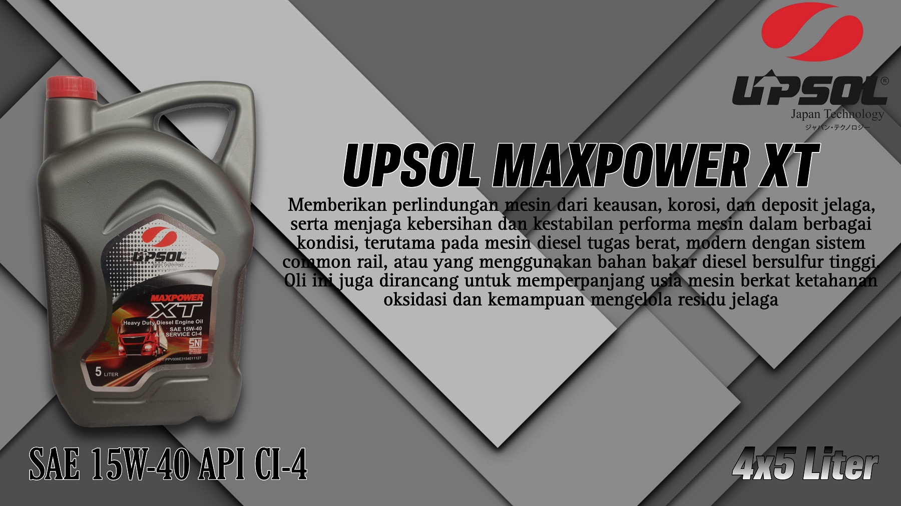 Jadilah yang pertama memberikan ulasan “UPSOL® MaxPower XT SAE 15W-40 API CI-4”